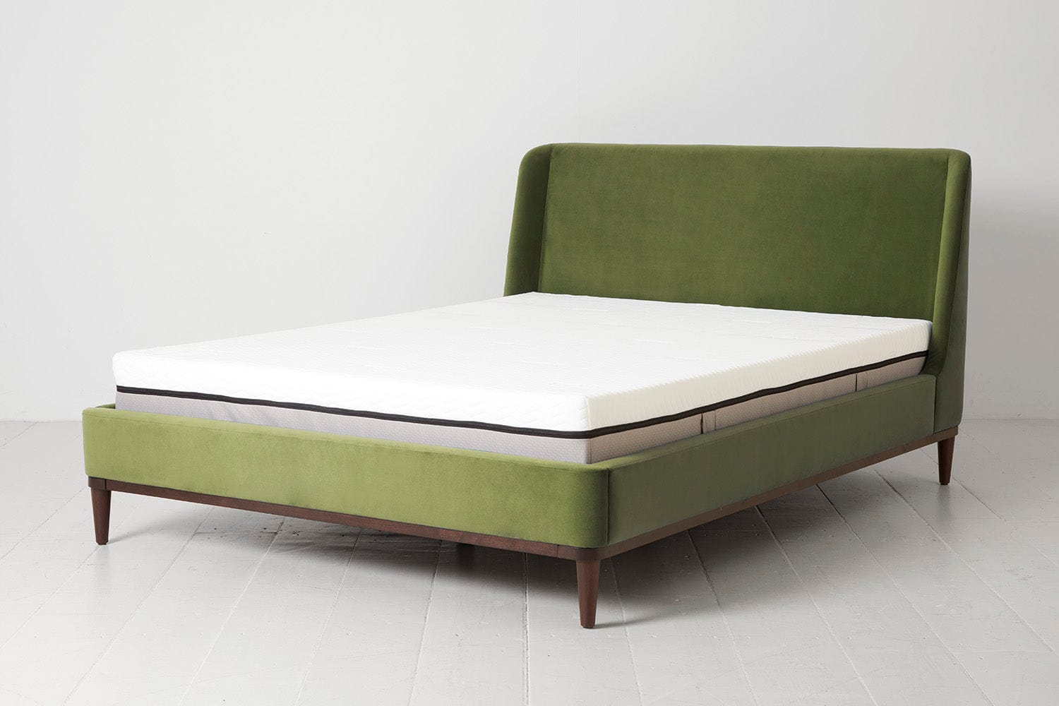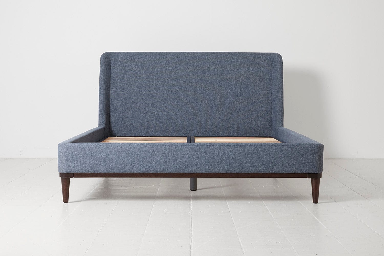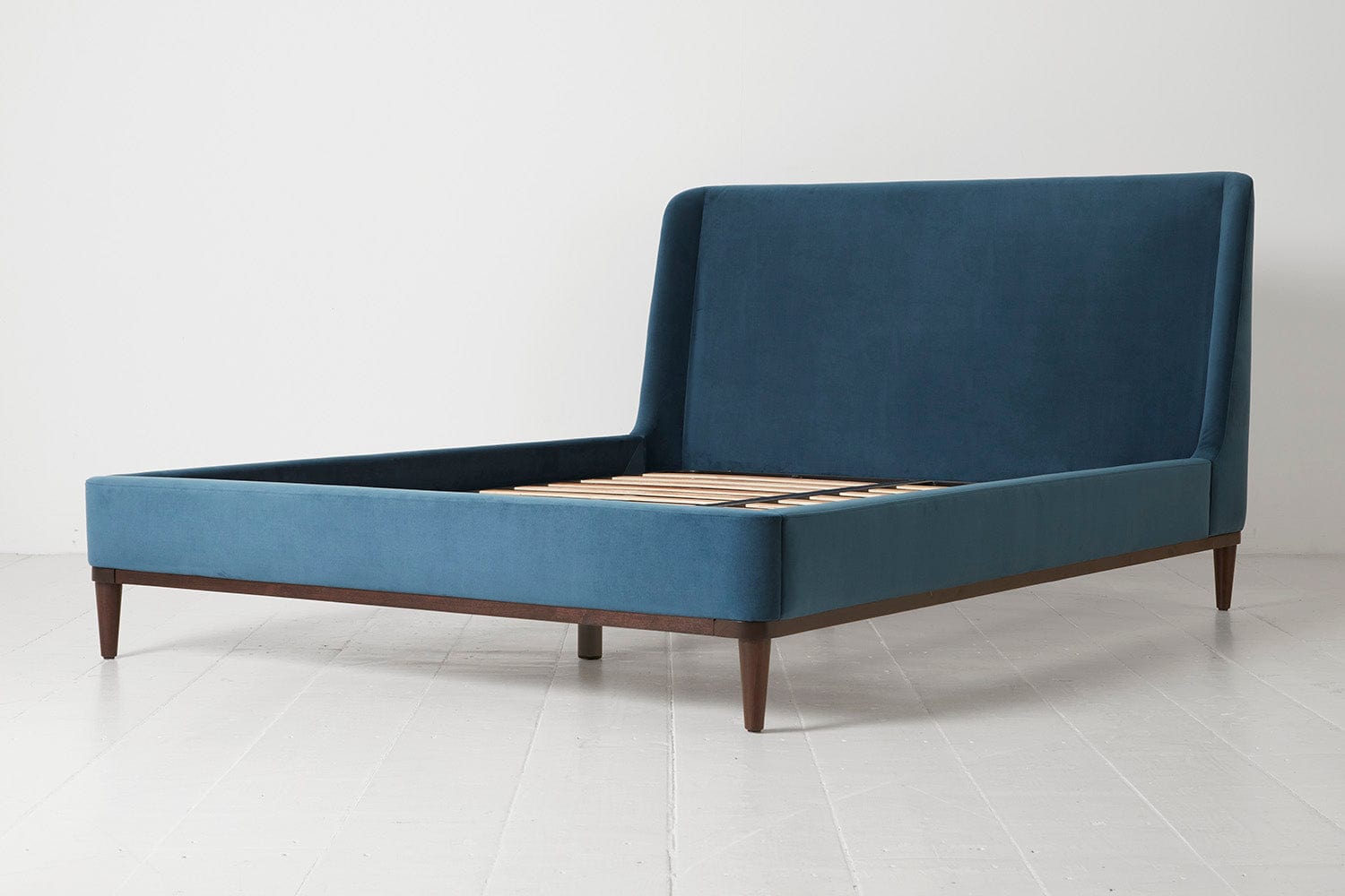 The Bed 02 King Size Bed comes with a solid wood frame, enveloped in an upholstered and contemporary style winged headboard. Available in a range of fabrics.
