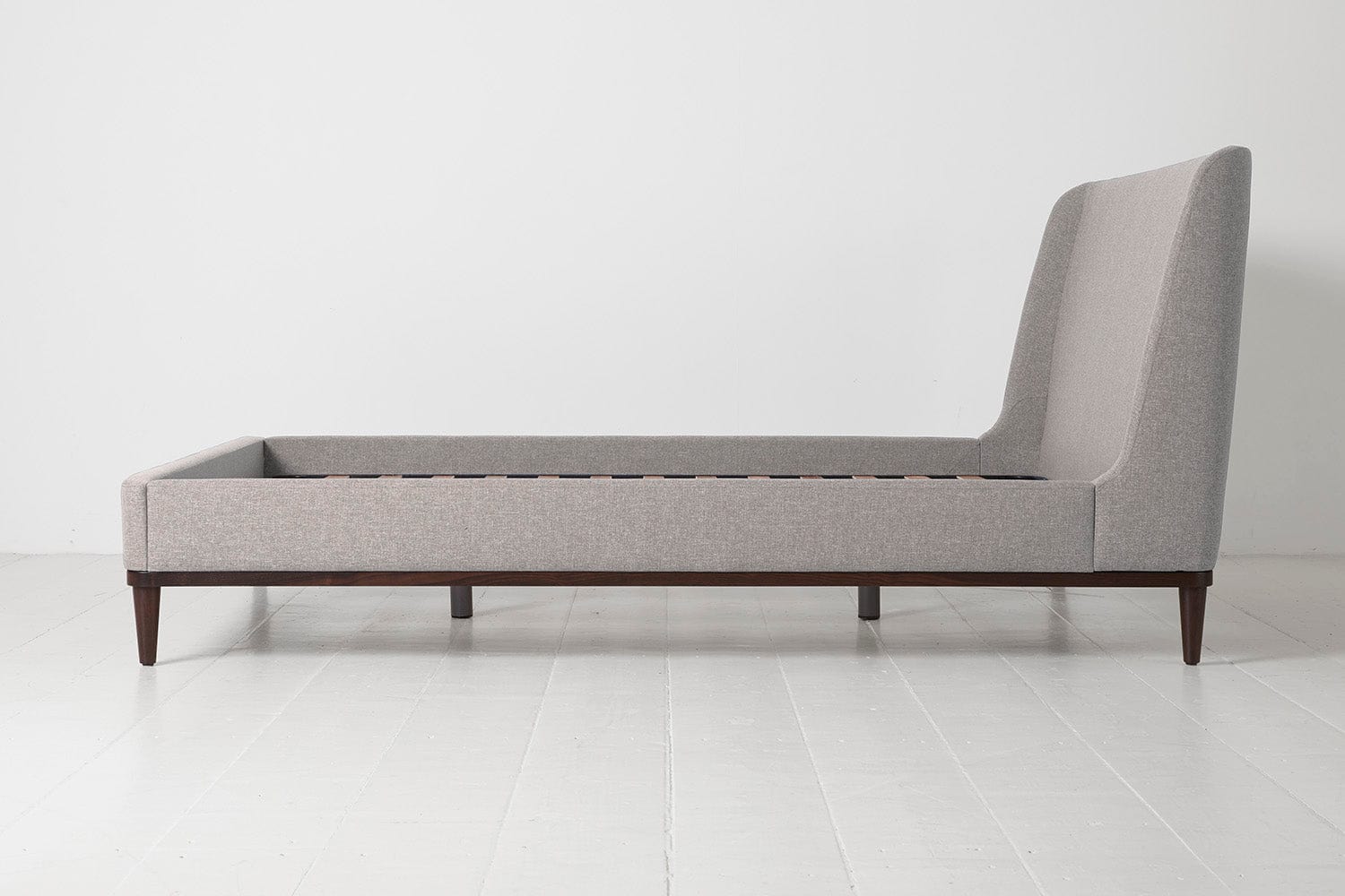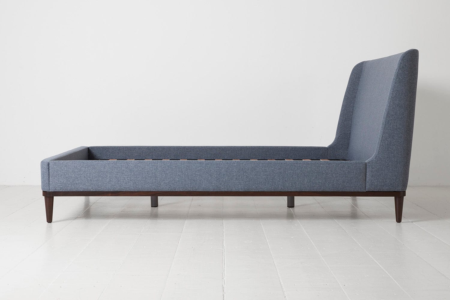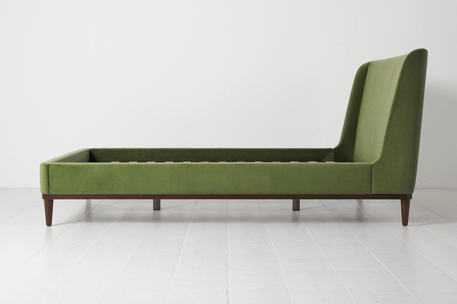 The Bed 02 King Size Bed comes with a solid wood frame, enveloped in an upholstered and contemporary style winged headboard. Available in a range of fabrics.